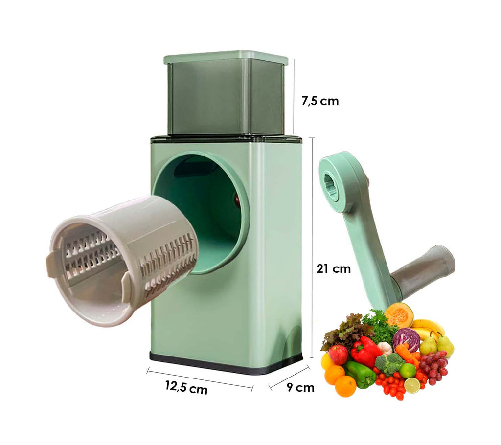 Cortador De Legumes Ralador Multifuncional 3 Em 1 Manivela Aço Inox O Cortador 3-em-1, seja cortando, triturando ou fatiando. As lâminas deslizantes são fáceis de limpar e seguras de usar. É possível utilizar na maioria dos vegetais facilmente. A haste de pressão especialmente projetada sela o espaço entre a lâmina e a porta de alimentação, reduzindo o desperdício e não machucando suas mãos. Especificações Técnicas: Modelo: Cortador De Legumes 3 Em 1 Multifuncional Manivela Cor: Verde Dimensões Aprox.: 28,5 Cm X 12,5 Cm X 9 Cm Peso Aprox.: 860 g Material do Corpo: Plástico Material das Lâminas: Aço Inoxidável Itens Inclusos na Embalagem: - 01x Cortador De Legumes -01x Manivela Acoplável -02x Lâminas Para Fatiar - 02x Lâminas Para Ralar -01x Manual (Inglês)