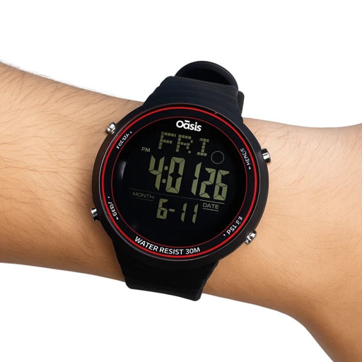 Relógio Oásis masculino esportivo, com design robusto, visor digital e analógico, resistente à água e ideal para o dia a dia ou atividades esportivas.