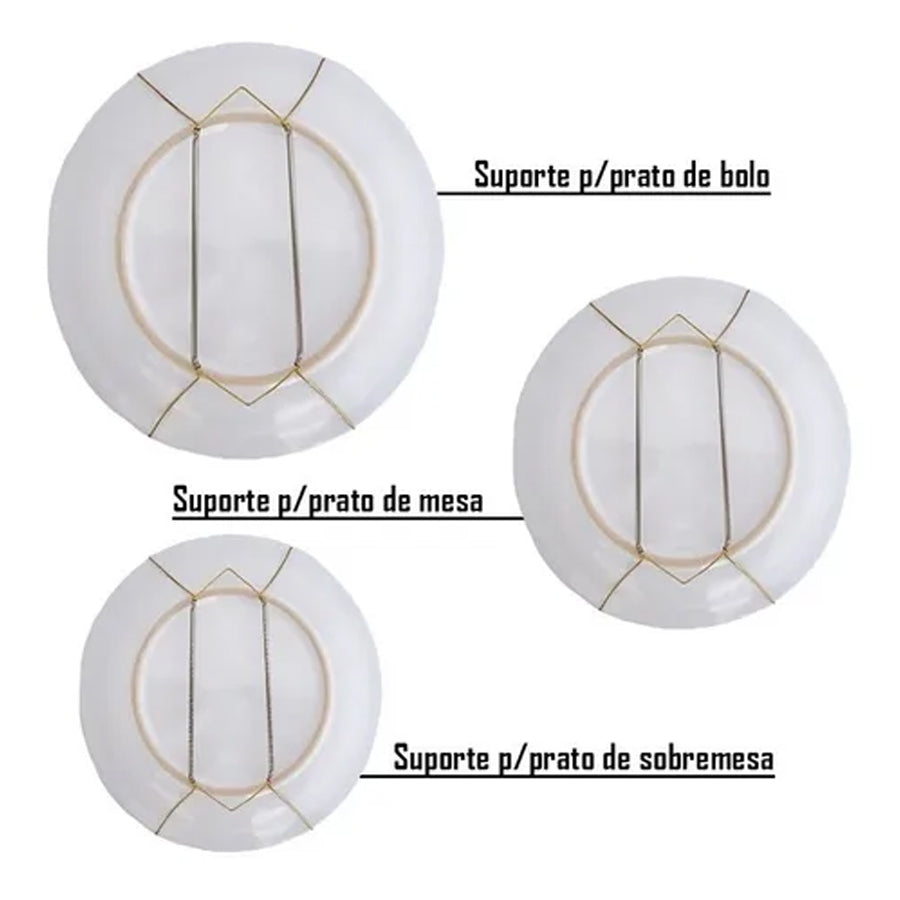 Suporte Gancho Mola Prato Decorativo Parede Pendura Descrição: Com este Suporte para prato você poderá otimizar ainda mais o espaço de seus armários e prateleiras, decorando seu espaço e dando um toque de elegância em seu ambiente, pendurando os pratos na sua parede. Tem dimensões de altura para comportar um prato. Perfeito para sua casa, bares, cafés e restaurantes. Possuí design inteligente que proporciona agilidade para remover e colocar o prato. Especificações: Material: Alumínio Cor: Envio Aleatório (Preto, Prateado ou Dourado) Tamanhos: - Pires (11 a 15cm) - Sobremesa (12 a 16cm) - Mesa (14 a 24 cm) - Bolo (18 a 30cm) - Tabuleiro (35 a 45cm) Item Incluso: 1 - Suporte Gancho Mola Prato Decorativo Parede Pendura